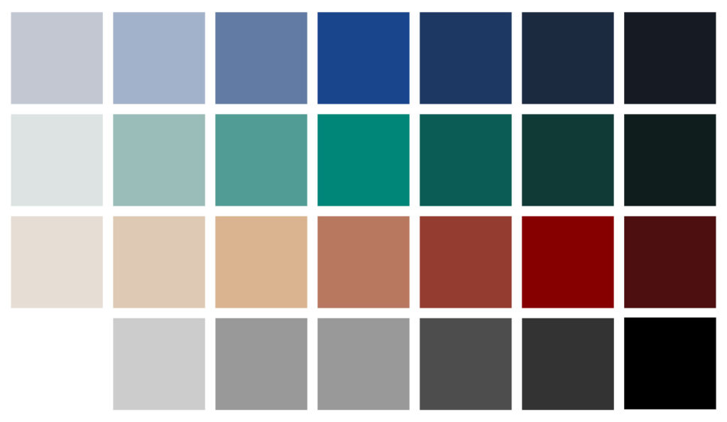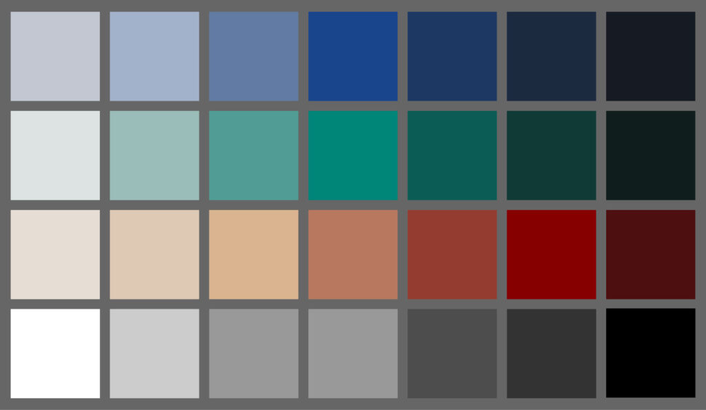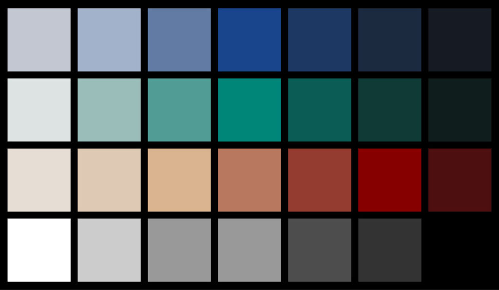 These are generated using the two primary blues @ -77% saturation & 77/97% dark/light gradients. ( see demo )
