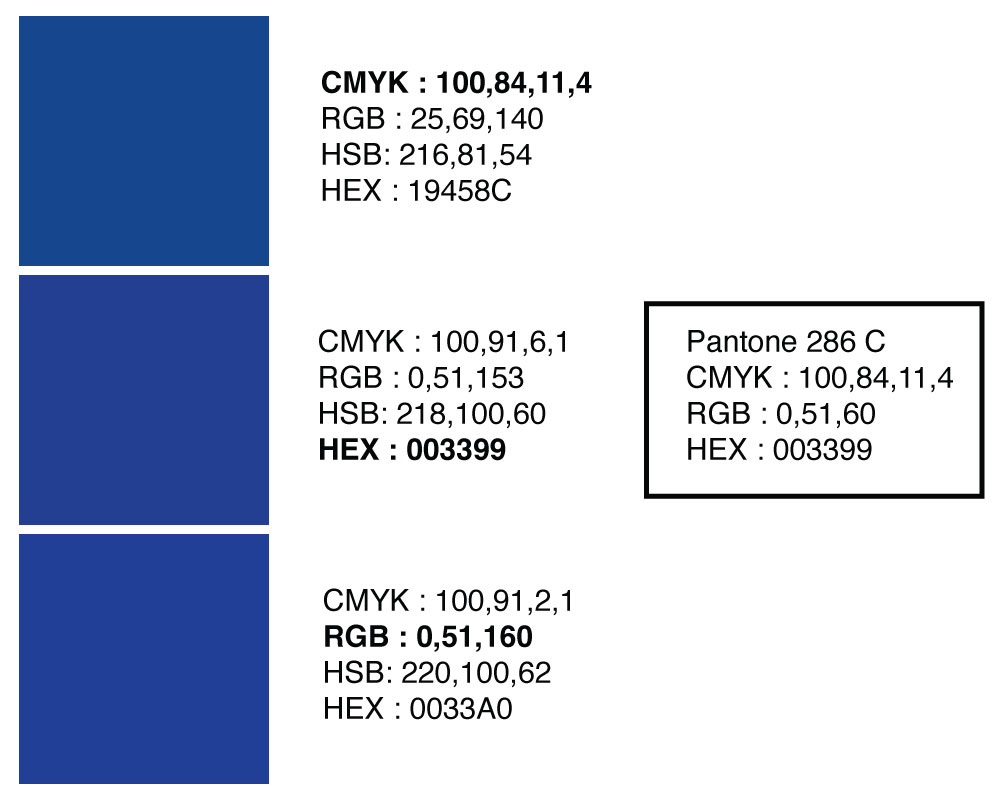 Blue – #0033A0 – #19458C – Pantone 286 C
